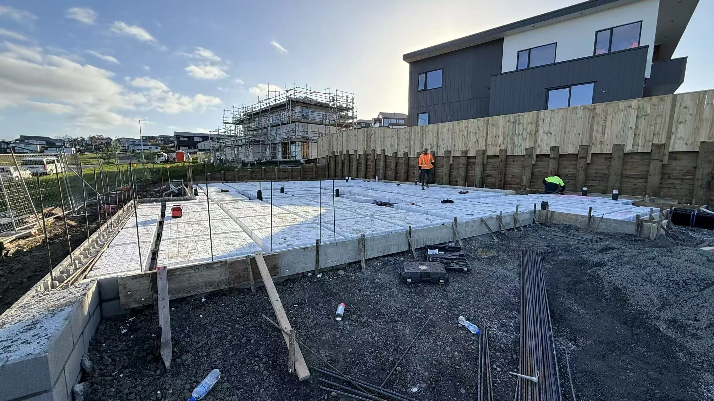 This project in Long Bay required a complete site and foundation solution, incorporating both structural retaining walls and a modern RibRaft foundation system to prepare for a new residential build.