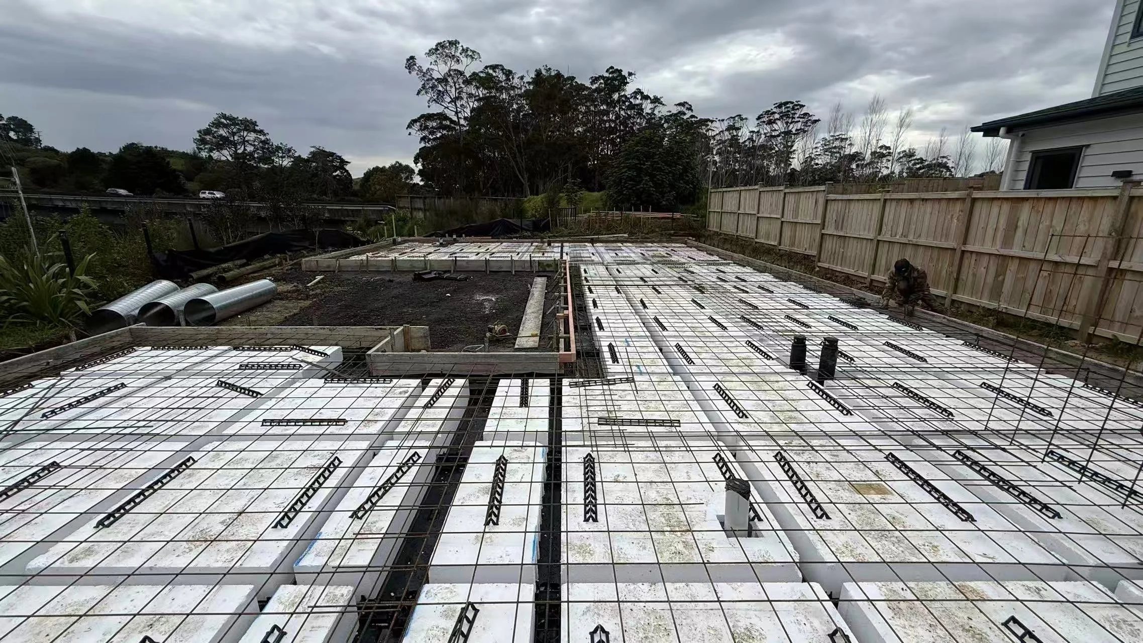 This new residential build at 18 Puruatanga Road, Upper Orewa, required a complete foundation works package and a precision-engineered system specifically designed to manage the demands of the sloped site and provide a stable base for the home.