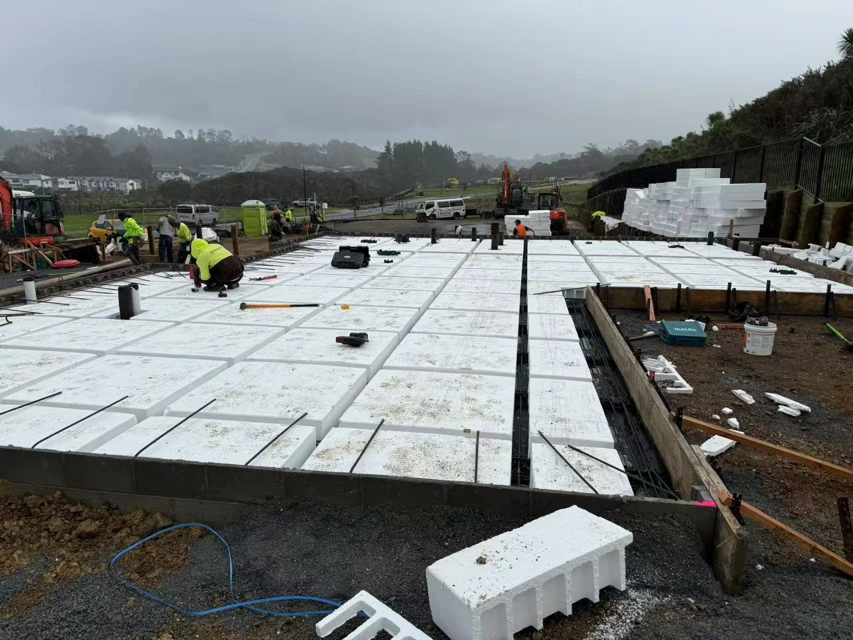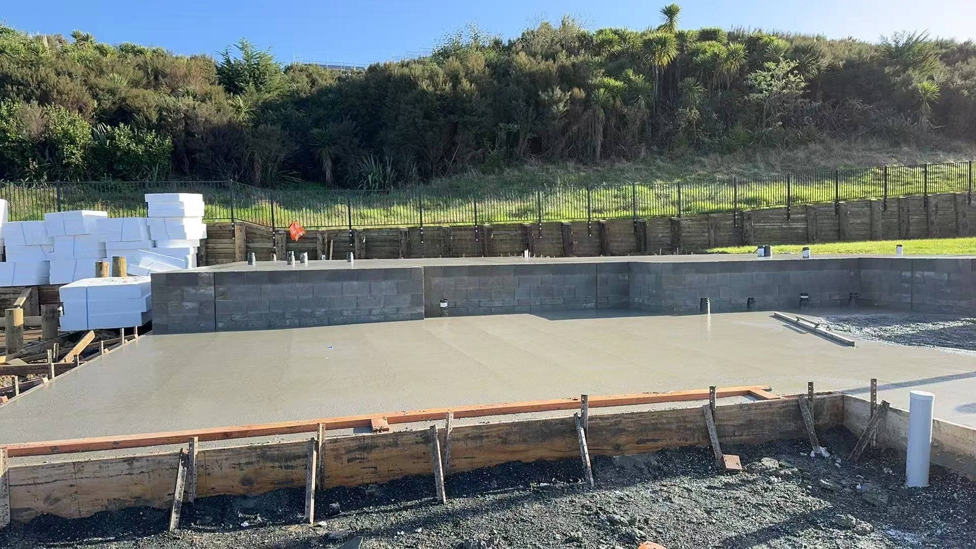 This project in Longbay required a custom-engineered foundation to accommodate a split-level design, navigating a change in elevation across the building platform.