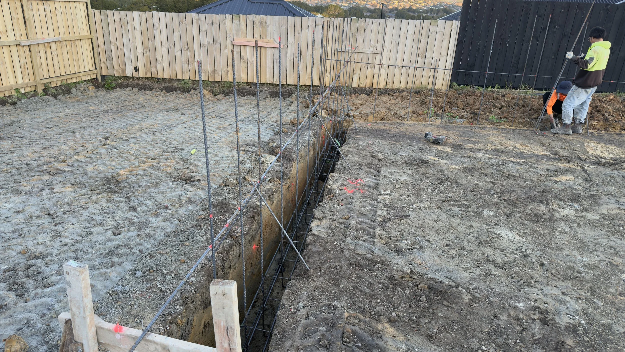 Footings for Block Wall: Engineered footings to provide a solid base for the block wall structure.