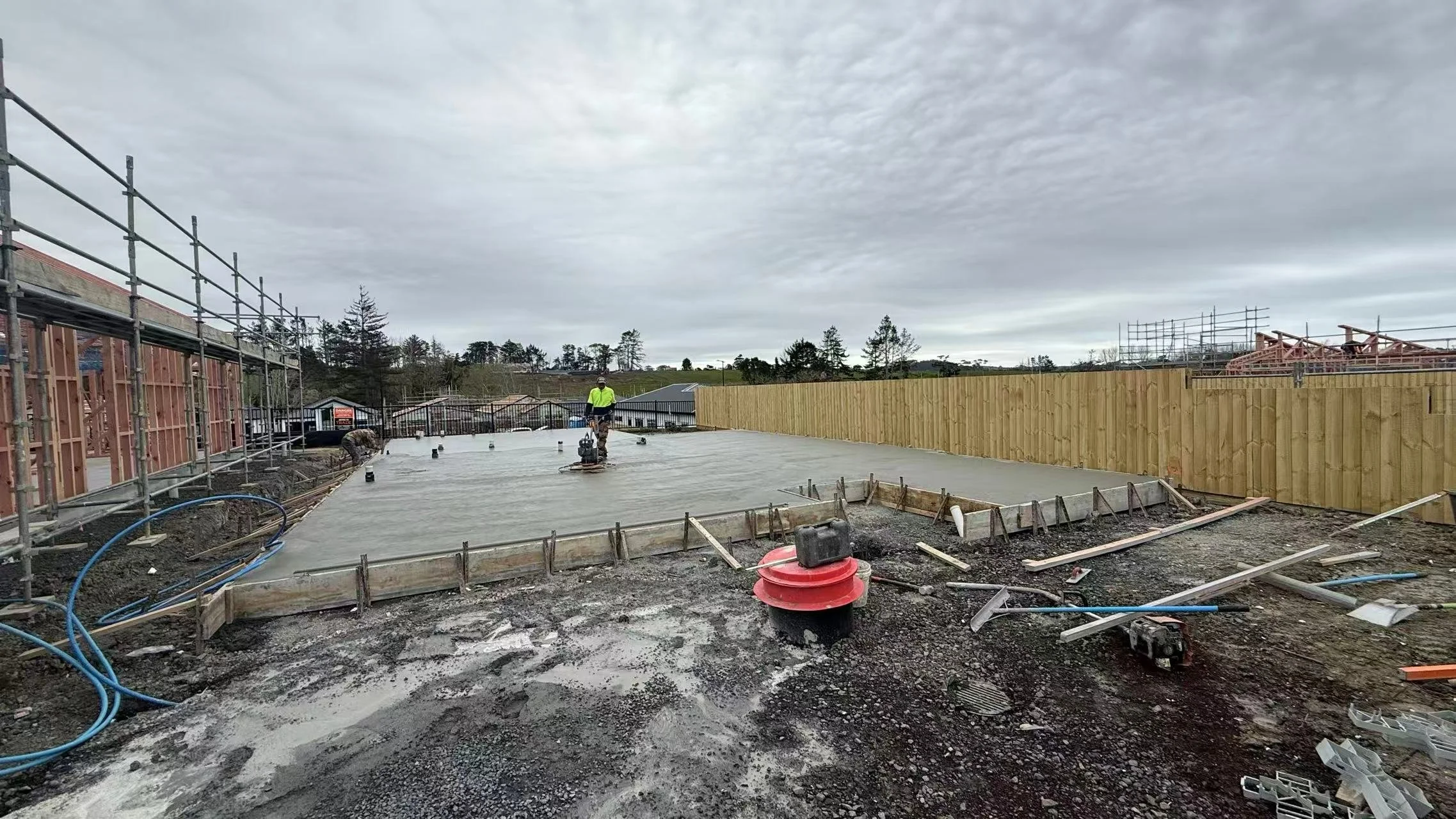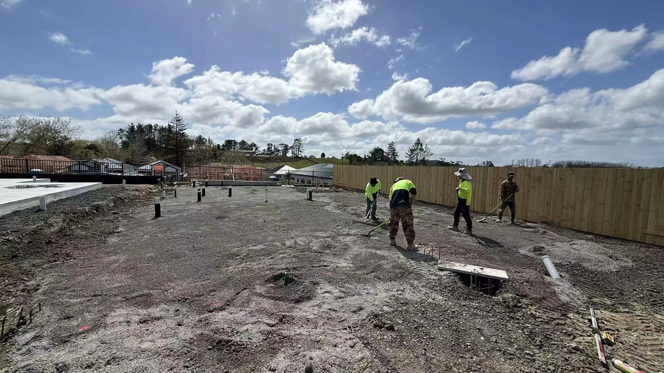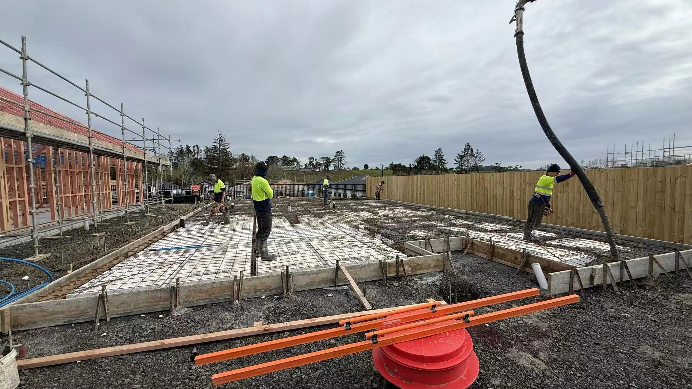 Concrete Laying: All associated concrete placing, levelling, and finishing for the foundation system and footings.