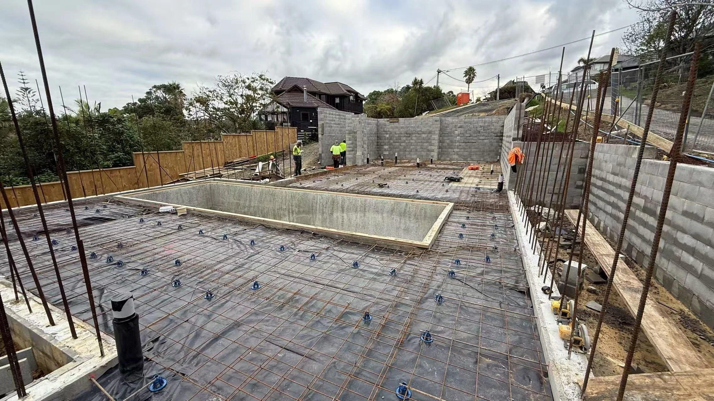 This complex, architecturally designed 3-story home in Campbells Bay required a highly specialized and robust foundation to accommodate its luxury features, including a lift pit and an indoor swimming pool