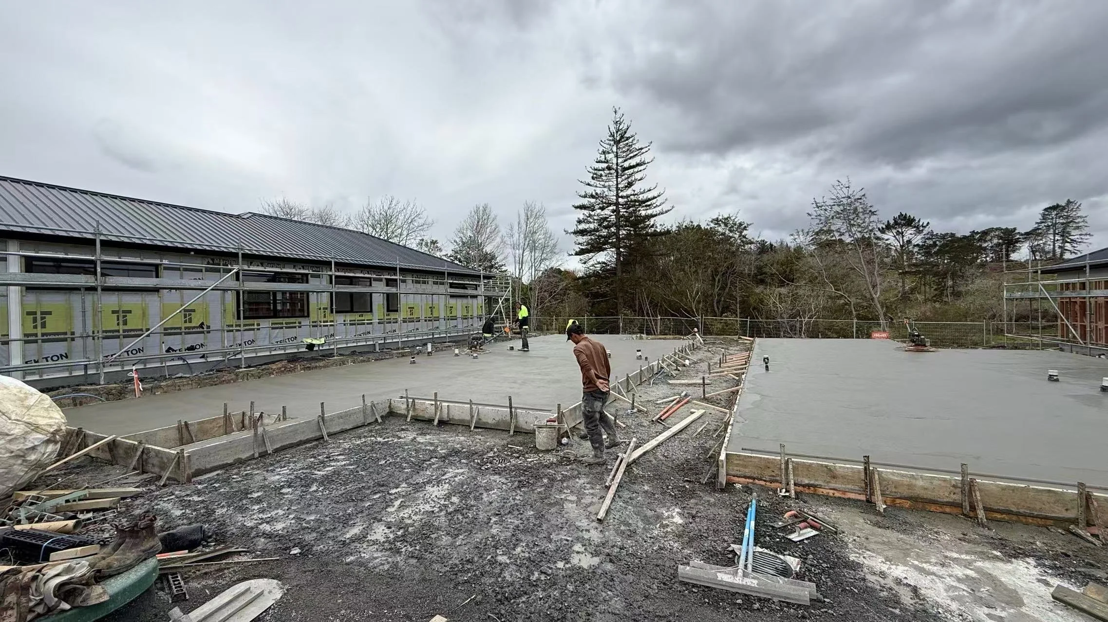 Concrete Laying: All associated concrete placing, levelling, and finishing for the foundations and other concrete elements across the properties.